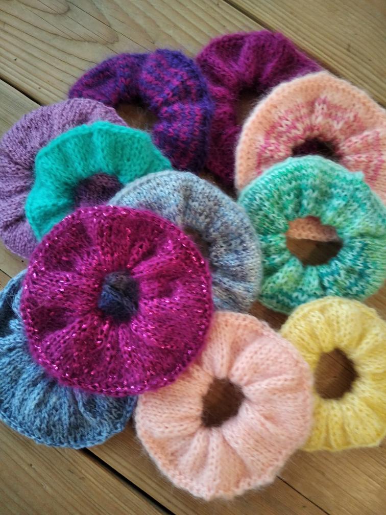 Vlatnoručně pletení, omotání na dvakrát, různé barvy.