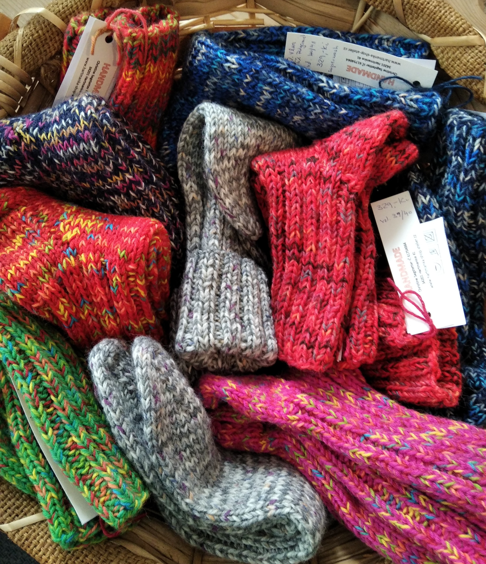 Vlastnoručně pletení,různé přírodní barvy. Velikost: M/L (cca. 52-56 cm)